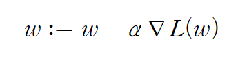 즉, 파라미터 w에 대해 위 과정을 반복하며 값을 업데이트하면 수렴하는 w는 함수 L을 최소화하는 파라미터가 된다.