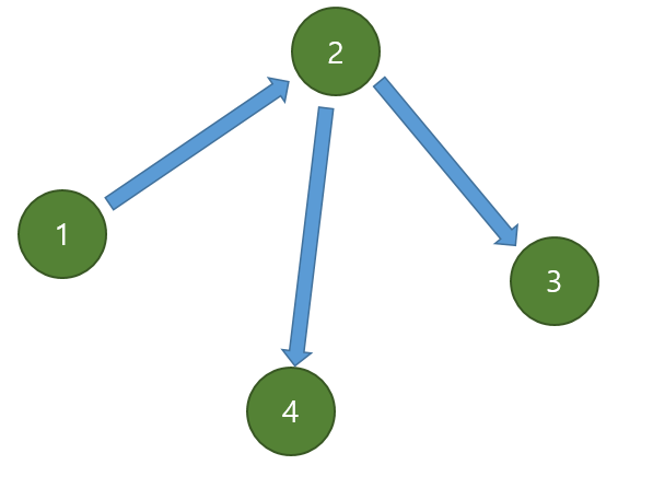 위에서 봤던 그래프에서 $indegree$가 $1$번 정점은 0, $2$번 정점은 1, $3$번 정점은 1, $4$번 정점은 1이므로