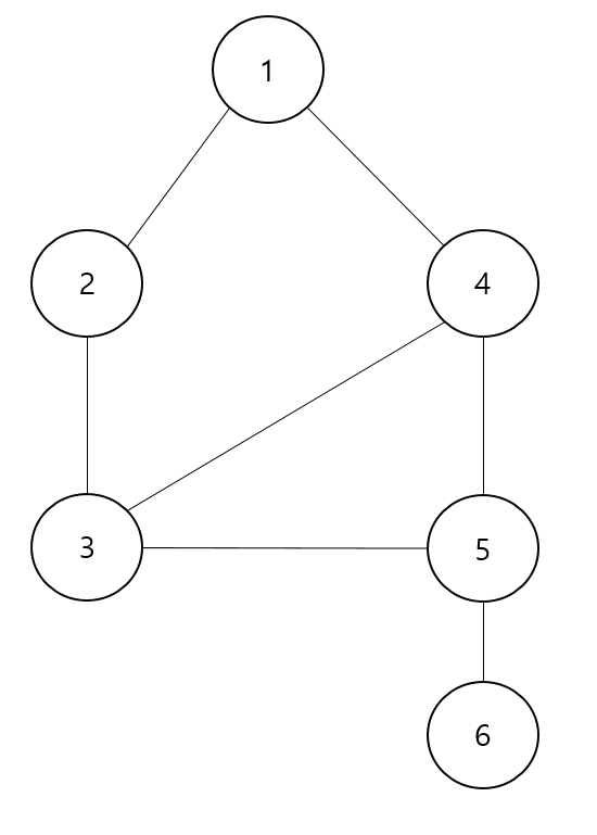 위 그래프에서는 $5$번 정점을 제거하면 그래프가 {1, 2, 3, 4}와 {6}의 두 컴포넌트로 분리되므로 $5$만이 단절점이다.