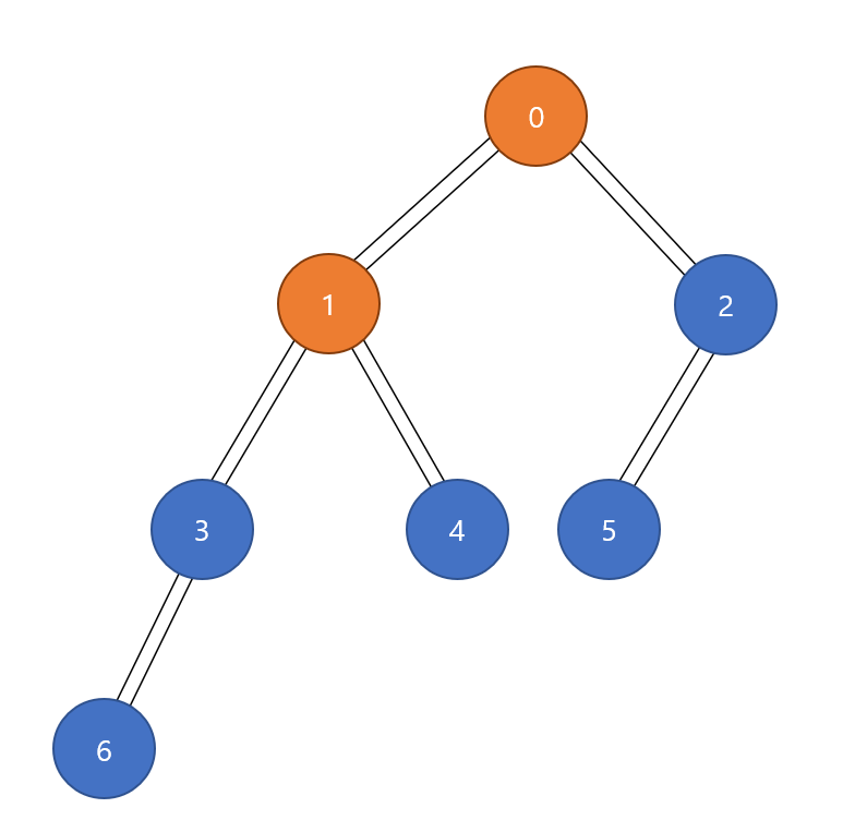 ∴방문 순서: 0 -> 1 -> 2 -> 3 -> 4 -> 5 -> 6